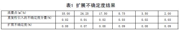 從表中已得出各測量點的Eri值。為此每個流量點由測量重復(fù)性引入的不確定度為: