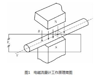 硝酸管道流量計(jì)是利用法拉*電磁感應(yīng)定律設(shè)計(jì)的流量測(cè)量?jī)x表,用于測(cè)量導(dǎo)電液體的體積流量。根據(jù)法拉*電磁感應(yīng)定律,當(dāng)導(dǎo)體切割磁力線(xiàn)運(yùn)動(dòng)時(shí),導(dǎo)體內(nèi)將產(chǎn)生感應(yīng)電動(dòng)勢(shì)Ex(圖1),方向根據(jù)右手定則確定,感應(yīng)電動(dòng)勢(shì)Ex的大小與磁場(chǎng)的磁感應(yīng)強(qiáng)度B、傳感器管道的內(nèi)徑D和流過(guò)導(dǎo)電液體的流速V成正比,B、D、V三者相互垂直,即Ex=BDV。