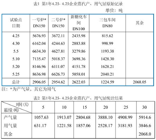 (1)綜上數(shù)據(jù),圖表可看出氮氣流量計測量飽和蒸汽,流量數(shù)據(jù)顯示清晰,穩(wěn)定可靠,其產(chǎn)、用氣量隨著流量計的完善,其差值變小了,也即使用部門越多,其消耗越少。