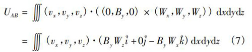 式中V為純水流量計(jì)傳感器測(cè)量空間;W→為權(quán)函數(shù)。在直角坐標(biāo)系(x,y,z)中,式(5)可以轉(zhuǎn)換為