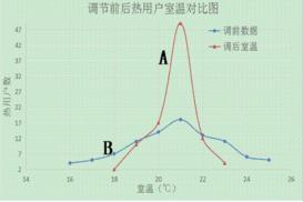 我公司在該小區(qū)管網(wǎng)改造前,在不同單元不同樓層分別安裝100臺室溫采集器。智能蒸汽流量計(jì)調(diào)前數(shù)據(jù)采集于2017~2018年供熱期,調(diào)后數(shù)據(jù)采集于2018~2019年供熱期。經(jīng)過兩個采暖期,共有96臺室溫采集器可以正常提供數(shù)據(jù)。數(shù)據(jù)分析結(jié)果見圖3所示。