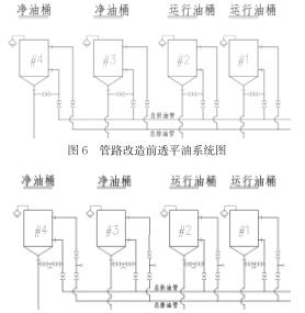 (2)改造后,單個(gè)油桶內(nèi)透平油的過(guò)濾和轉(zhuǎn)移工作中需操作的閥門(mén)減少(僅需操作2個(gè)支管上小通徑的閥門(mén)),極大地簡(jiǎn)化操作流程。改造前,每個(gè)油桶的油必須流入油處理室中的機(jī)組透平油供油和回油總管上,才能再次經(jīng)支管閥門(mén)進(jìn)入相應(yīng)油桶,好少要操作四個(gè)閥門(mén)(包括總管上臨時(shí)接口的大通徑閥門(mén))。