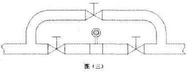5.被測介質(zhì)是嚴(yán)重污濁液體過容易在管道結(jié)垢的液體,可以在安裝傳感器的測量管道上加一個(gè)旁通管,以便于拆卸清洗。如圖三所示。