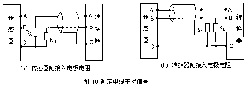按圖7-10所示及上文"電極接觸電阻的測量"所測得兩電極的大體電阻值RA、RR,分別按圖a、b接入電路所測得零點(diǎn)之差應(yīng)在滿度值1%或其基本誤差范圍以內(nèi)。